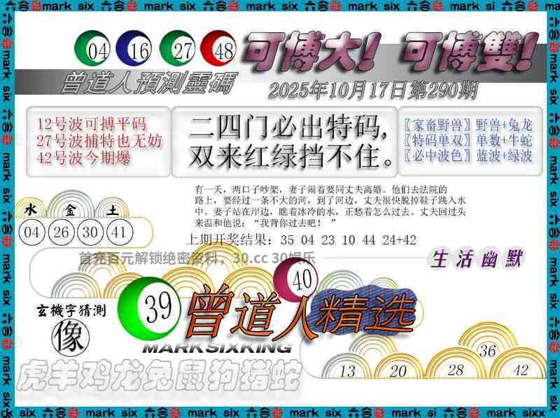 289期:必中单双双数】开:鼠42准